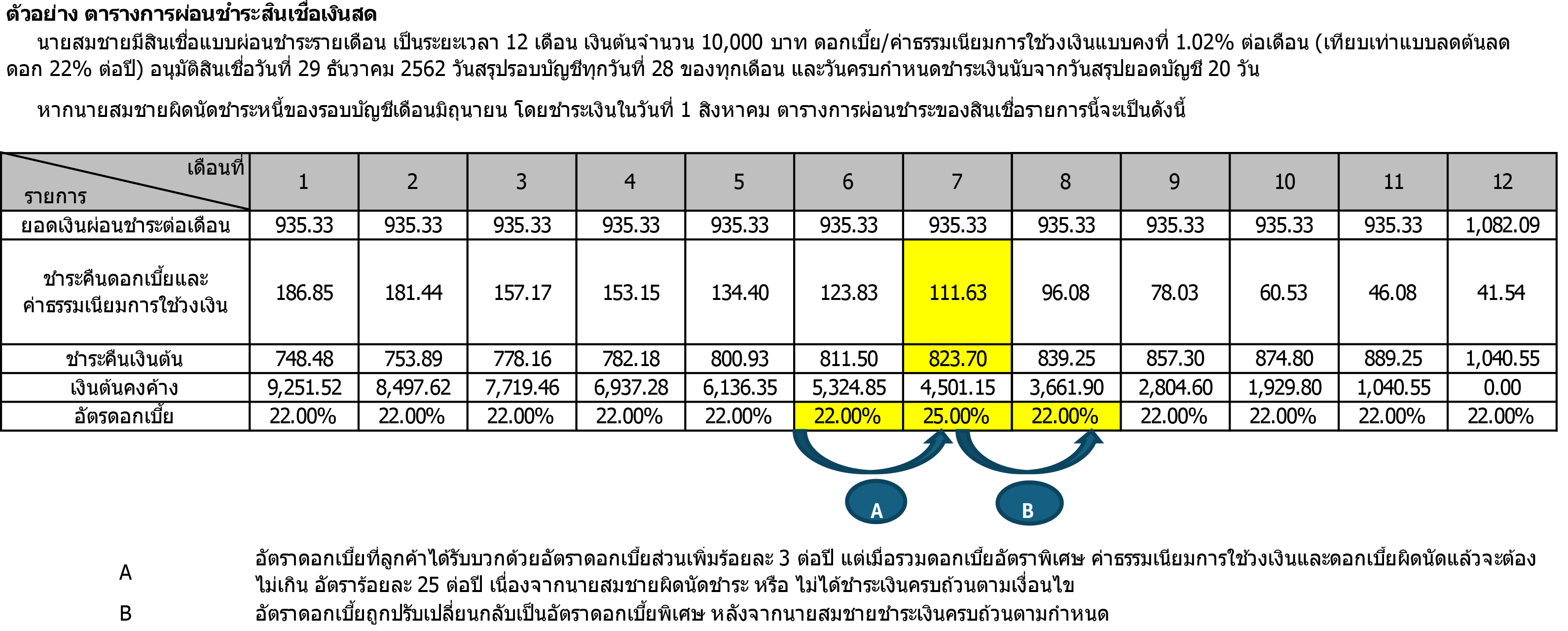 6.3 ยอดเงินที่ถึงกำหนดชำระในงวดนี้และยอดค้างชำระ (ถ้ามี) ซึ่งรวมยอดค่าธรรมเนียมต่างๆ