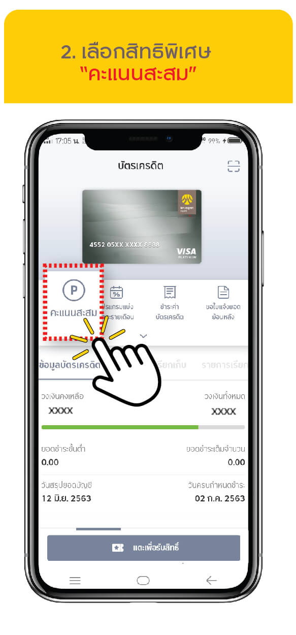 - เลือกแถบเมนู “คะแนนสะสม